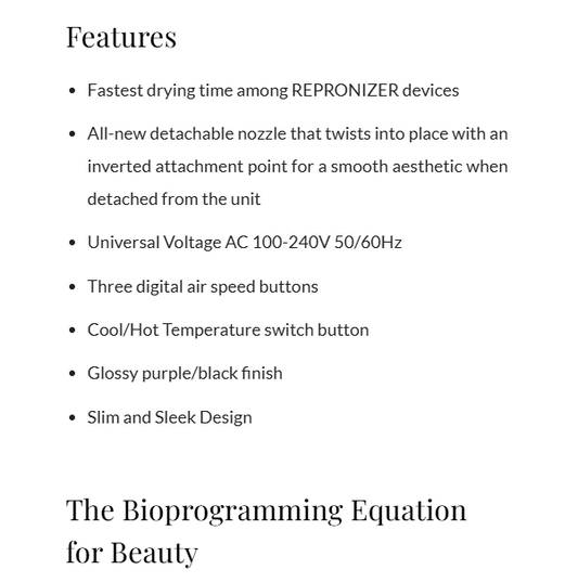 From Japan REPRONIZER 27D plus Hair Dryer AC 100-240V 50/60Hz REP27D-JP Bioprogramming