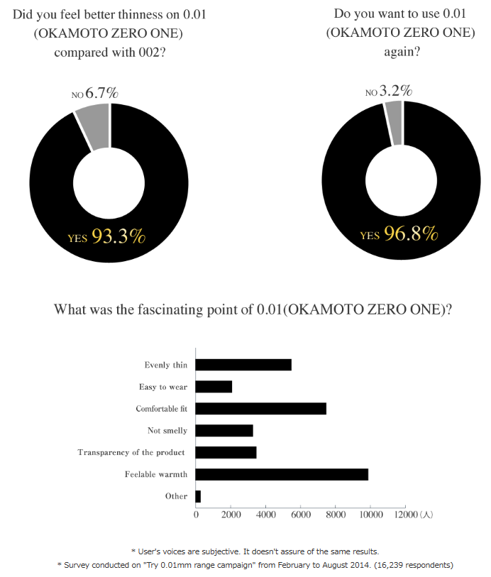 It shows that 0.01 (Okamoto zero one) is so soft that it is hardly noticeable.